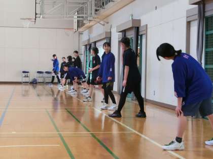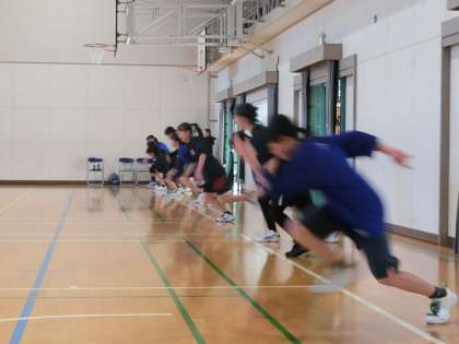 バスケットボール部の活動の様子です。正月休み明けですが、昨日に引き続いての練習です。今日は4名の小学生が参加し、いつも以上に活気のある練習になったようです。