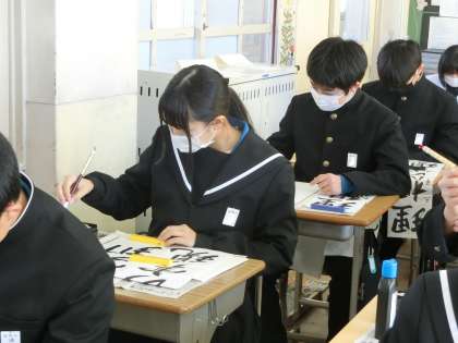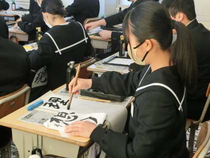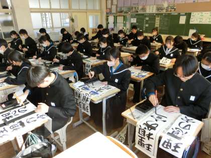 3年生の題目は「理想の実現」。多くの生徒が入試を間近に控え、4月からの新しい環境での生活を想像しながら筆を走らせていました。