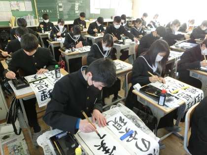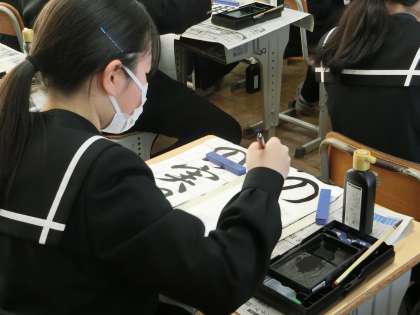 3年生の題目は「理想の実現」。多くの生徒が入試を間近に控え、4月からの新しい環境での生活を想像しながら筆を走らせていました。