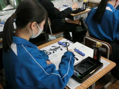 本日の2・3時間目に行われた書き初め大会・3年1組の様子です。