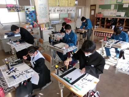 1/9 1&2 のびのびと書く 1 公開日 2024/01/09 更新日 2024/01/09 各学年から 本日の2・3時間目に行われた書き初め大会・1,2学級の様子です。 学年によって題目は違いますが、それぞれがこれまでの練習の成果を発揮しようと一生懸命取り組んでいる姿が印象的でした。