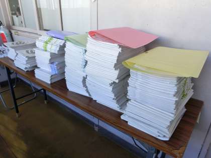 冬休みの課題が教科担任の教室の前に続々と提出されてきています。