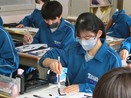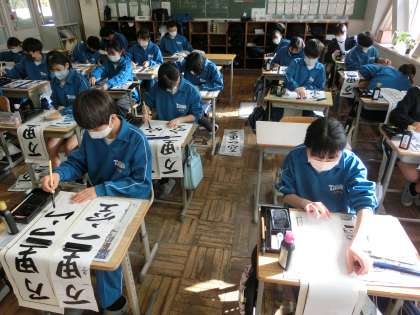 1年生の題目は「万里一空」。これまでの練習の成果を発揮しようと黙々とと取り組んでいました。