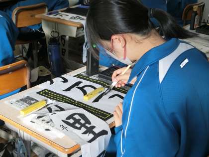 題目の文字には「一つの目標に向かって努力し続けること」という意味があります。これからの課高岡中を引っ張っていくべき目標を見据え、力も十分に蓄えていってほしいと思います。