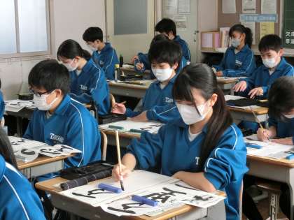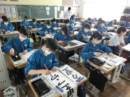 1年生の題目は「万里一空」。これまでの練習の成果を発揮しようと黙々とと取り組んでいました。