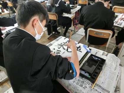 本日の2・3時間目に行われた書き初め大会・2年4組の様子です。