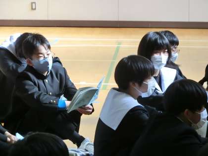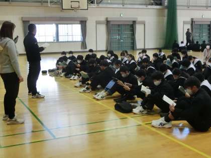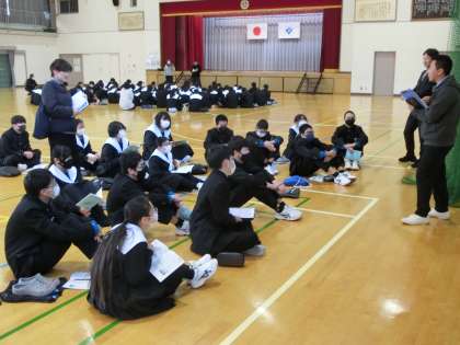 書き初め大会のあとに行われた2年生の学年集会の様子です。