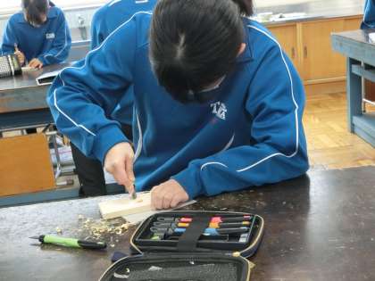 1/10 23 木彫マスターになろう! 3 公開日 2024/01/10 更新日 2024/01/10 各学年から 2年3組の美術の授業の様子です。 木彫での作品づくりに入るにあたって、「木彫マスターになろう」をテーマに彫刻刀の安全な使い方、様々な彫り方の練習に取り組んでいました。納得のいく作品づくりには、まずはしっかりとした技術も必要です。限られた時間で確実にマスターし、素晴らしい作品づくりに挑戦してほしいと思います。