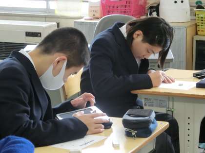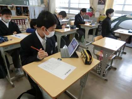「冬休みの思いで」と題した作文と、その紹介イラストをかいていました。印象に残っている思い出を思い出すたび、当時の楽しさがよみがえってきているようでした。覚えている情報をもとに、タブレットを使って細かく調べてから作文に取りかかっている生徒もいました。