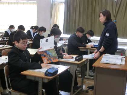 1/10 32 ニュースで聞いたあの言葉 3 公開日 2024/01/10 更新日 2024/01/10 各学年から 3年2組の社会・公民分野の授業の様子です。 EU、ASEAN、APEC、FTA・EPA、TPP11など、一度は耳にしたことのある言葉が並びます。読み方やその意味をしっかり確認しながら授業が進められていました。