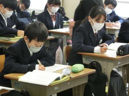 『「不便」の価値を見つめ直す』のまとめとして、「各段落の要点をまとめよう」をテーマに学習が進められていました。冬休み前に学習した内容をどれだけ理解し、どこまで覚えているかがカギとなります。これまでのノートや学習プリントを見返し、必死に記憶をたどりながら学習に向かっていました。