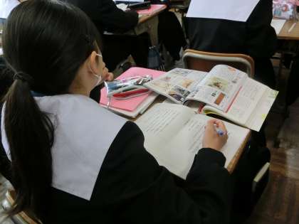 「平家物語」を現代語訳にし、情景や登場人物の心情を読み取っていきます。加えて対句や擬声語などの表現の工夫についても学習していました。