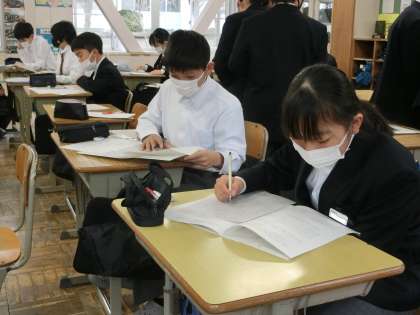 2月に実施される学習診断テストに向けて、冬休み明け最初の授業から取り組んでいます。定期テストより出題範囲が広く、夏休み前に学習した部分は記憶が薄れていることもあります。そうした部分や理解が不十分なところを仲間や教科担任と一緒に克服していきます。