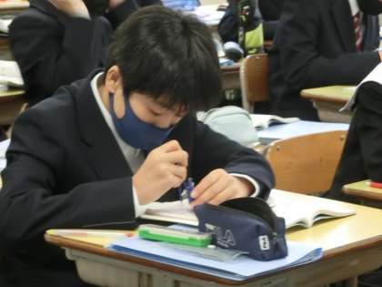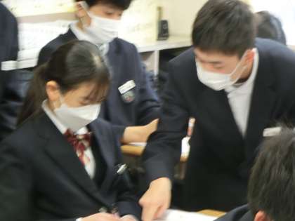 1/11 13 コンパスと定規だけで… 2 公開日 2024/01/11 更新日 2024/01/11 各学年から 1年3組の数学の授業の様子です。 「垂線の作図の仕方」について学んでました。コンパスと定規を使い、その手順を覚えていきます。また、分度器を使わずに60度、45度、30度をかいていく方法を仲間と考えていました。