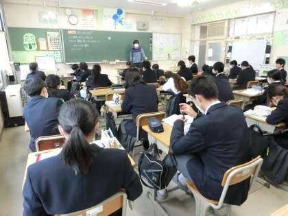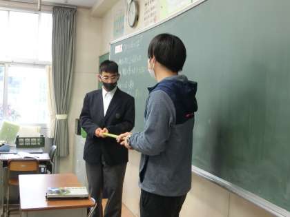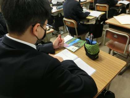 「力のはたらきと種類」について学習が進められていました。「力がつり合うとは?」を理科的な考え方・表現の仕方で説明していきます。今回は生徒の一人が授業アシスタントとして活躍していました。教科担任とのやり取りをハラハラ・ドキドキしながら見ている生徒たちの様子が印象的でした。