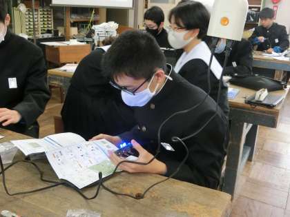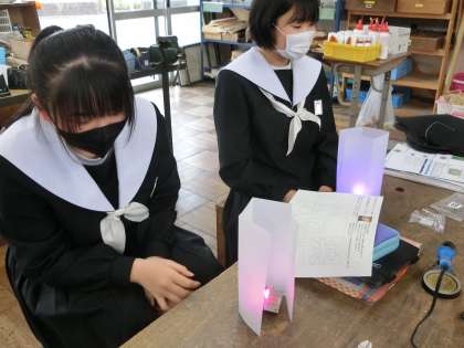 キャンドルライトづくりに取り組んでいました。細かな部品を組み立てた本体はおおよそ完成し、今回はそれを包む傘の部分の製作です。自然教室の立志式で使用するものとあって、お気に入りの言葉や模様を丁寧に書き込んでいました。