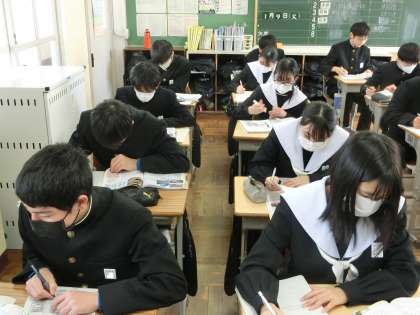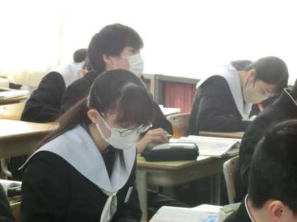 「国際連合はどのような役割をはたしているのだろうか」をテーマに学習が進められていました。まずはプリントを使って重要語句や学習の大まかな流れをつかんでいきます。こうすることで、授業への集中度が増してきます。