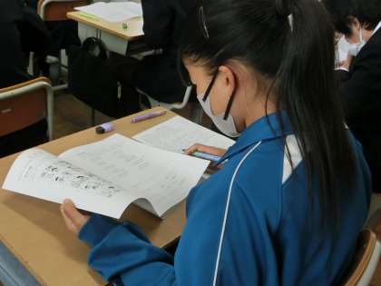 学習診断テストの感覚をつかむため、過去の問題に挑戦していました。今回の感触から、これまでの学習を見つめ直し、日頃から準備を進めてほしいと思います。