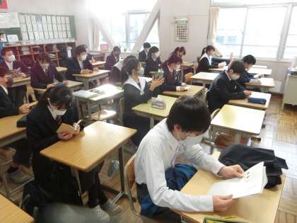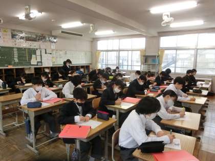 2月に実施される学習診断テストに向け、各教科の学習に取り組んでいました。出題範囲が広いため、過去にじっしされた定期テストなどから、正答率の悪かった問題を中心に取り組んでいます。短い時間で集中して学習する習慣もつけていきます。