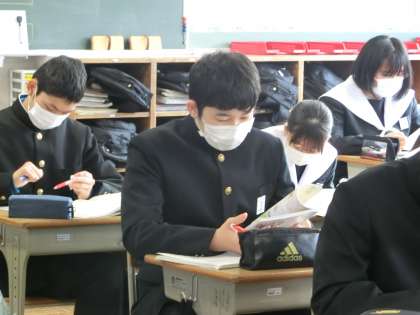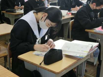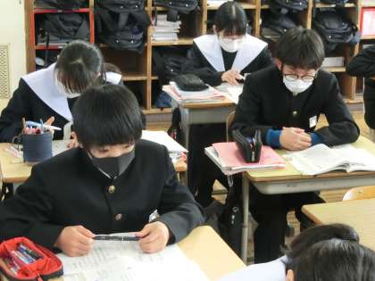「漢詩の風景」という単元で、「漢文の基礎知識」について学んでいました。絶句・律詩などの種類や送り点・送り仮名の位置などを覚えていきます。読む順序もしっかりマスターするなど、今後の学習でも気を抜かず、しっかり学習してほしいと思います。