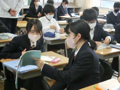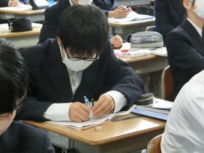 1/15 14 手順をしっかりマスターしよう! 3 公開日 2024/01/15 更新日 2024/01/15 各学年から 1年4組の数学の授業の様子です。 「二等分線を作図しよう」をテーマに学習が進められていました。直線に対しての「垂直直二等分線」、角を半分にする「角の二等分線」。どちらもコンパスを使いますが、その手順もしっかりマスターしてほしいと思います。