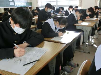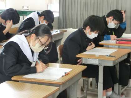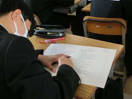 2週間後に迫った学習診断テストに向け、歴史分野の重要語句の総確認が行われていました。出題範囲も広いため、十分な対策と学習を本番直前まで続けてほしいと思います。