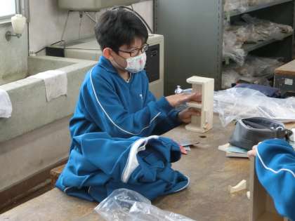 木製品づくりもいよいよ仕上げの段階にきました。カンナやヤスリをかけて仕上がりをさらによくしていこうと活動しています。完成するその時まで一切手を抜かず、仲間の力も借りながら、最高の作品づくりに没頭していました。