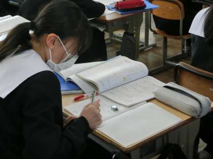 平行四辺形の性質を学習したうえで、その確かさを証明していく問題に取り組んでいました。まったく新しいことばかりでなく、落ち着いて考えるとこれまで学習してきた内容が盛り込まれていることに気付いたようでした。