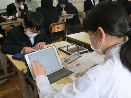 1年3組の社会・歴史分野の授業の様子です。