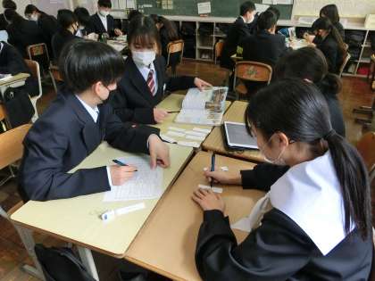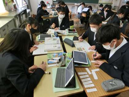 1年3組の社会・歴史分野の授業の様子です。
