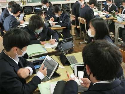 1年3組の社会・歴史分野の授業の様子です。