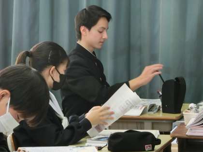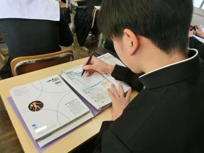 入試を目前にし、公民分野のテキストやプリントで総復習に取り組んでいました。