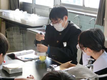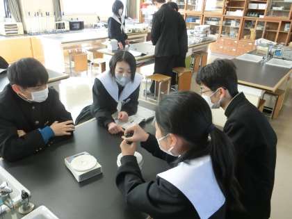 「空気に質量があるか調べよう」をテーマに実験が行われていました。簡易装置を使って容器内を真空にしていきます。容器内の空気が少なくなるにつれ、中の風船が大きくなっていきます。でもだんだん軽くなる…。 この不思議もしっかり説明できるようになってほしいと思いました。