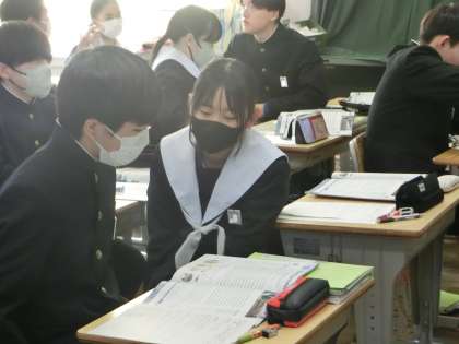「エネルギー問題について、どんな意見を持っていますか?」というテーマで学習が進められていました。他の教科で学習してきた課題ですが、英語で答えるとなると違った難しさに直面します。