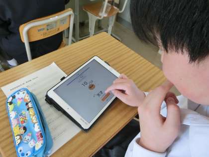 英単語の学習に取り組んでいました。「高岡英語検定」と題されたプリントに挑戦し、級をどんどん上げていく生徒、学習用タブレットの英単語アプリを使ってどんどんステージをクリアしていく生徒など様々です。根気よく繰り返し、チャレンジ精神で取り組む姿に感心しました。