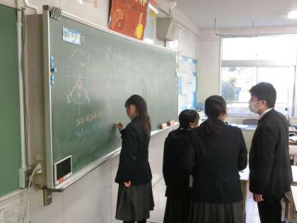 円の円周や面積を「π(パイ)」を使って計算する学習に取り組んでいました。円周率の「3.14」を使っていた時より、ずいぶんスムーズに計算できるようになり、たくさんの問題に挑戦していました。