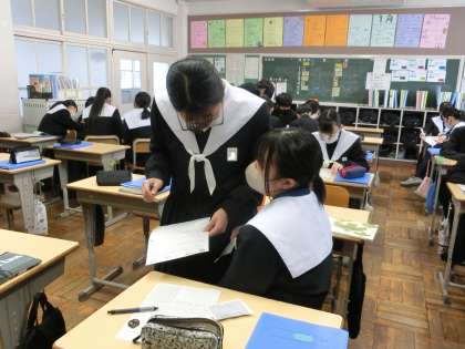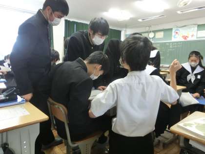 「標本調査」についての学習に取り組んでいました。標本調査とは、全体の中から一部だけを取り出して調べ、全体を推定するというもの。「○人を無作為に抽出して行った調査では〜」などといった調査のことです。身の回りでよく行われている調査の基本を学んでいました。