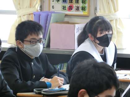 「出血がある時の応急手当」と「外傷の応急手当」について学んでいました。来週実施される自然教室の様々な活動についてふれ、まずはケガをしないで愉しむことを最優先にしてほしいことも話されていました。また前の単元で学習した柔道で習った受け身も、スキーやスノーボードの転倒時には十分に役立つことも紹介されていました。