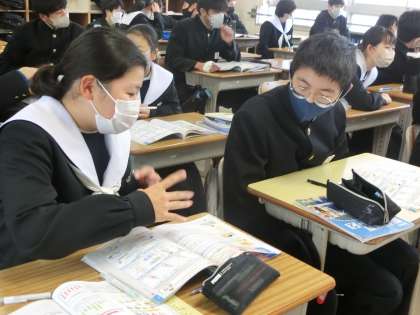 「外傷の応急手当」について学んでいました。プロ野球の投手などが試合後に肩を冷やしている様子を取り上げ、激しい運動のあとは筋肉や関節を冷やすと疲労の回復が早くなることが説明されていました。今後の部活動などでも参考にしてほしいと思います。
