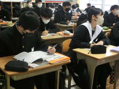 1/18 22 興味ある話になると… 3 公開日 2024/01/18 更新日 2024/01/18 各学年から 2年2組の理科の授業の様子です。 気象の単元で「圧力(気圧)についてまとめよう」をテーマに学習が進められていました。圧力を求める公式を学んだあと、身近な圧力に関係するものについて話題が変わったとたん、生徒たちの姿勢がさらに前のめりになり、興味をもって学習に参加していました。