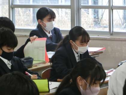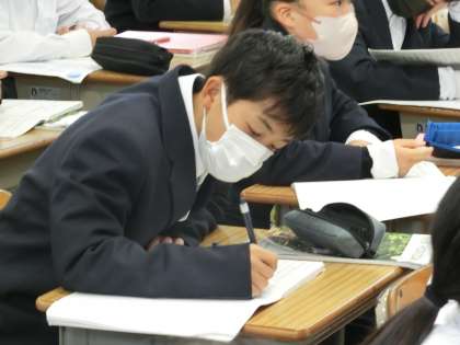 「Megは元日に何をした?」の文法を身につける学習に取り組んでいました。教科書内の会話のやり取りから、どんな場面でどのように使うかなども学んでいきます。