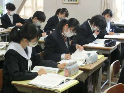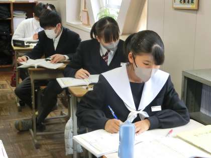 「少年の日の思い出」の単元で、本格的な読み取りを前に登場人物や場面設定の確認を行っていました。また、本文を前半と後半に分け、それぞれのあらすじを確認していました。