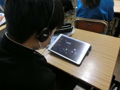 タブレットの学習用アプリを使って、天体に関する学習の総まとめに取り組んでいました。生徒によっては同じ部分を繰り返して納得できるまで視聴していきます。見終わると次はテキストに取り組んでいきます。それぞれのペースに合った充実した学習になっていたようです。