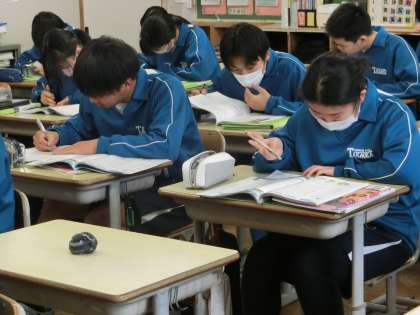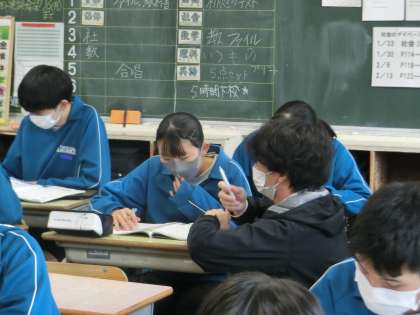 教科書の長文の読解に挑戦していました。何度も本文を読み、自力で答えを導き出そうと全員が必死に取り組んでいた雰囲気が印象的でした。