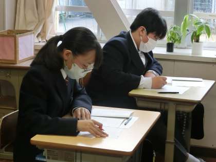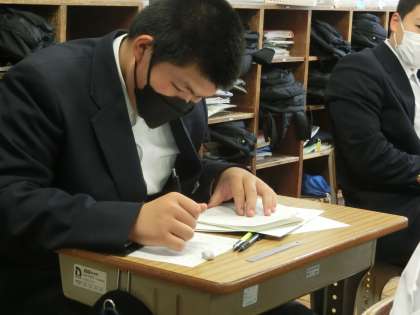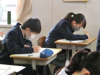 2週間後に実施される学習診断テストに向けて過去の問題に挑戦していました。出題数や問題のレベルなどテストの雰囲気を確認しつつ、自身の弱点も探していきます。授業はもちろん、家庭での学習もレベルが上がるよう、学年部の教師も工夫しています。