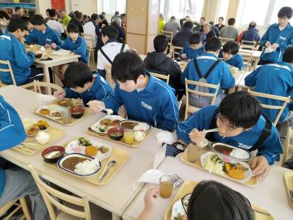 メニューは、カレーライス、コロッケ、アイスクリーム…。最強の組み合わせで、生徒たちの心と身体に栄養を補給します。