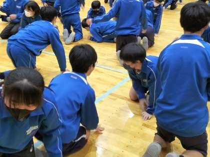 写真は、前半のお楽しみの催しである学年レクの様子です。