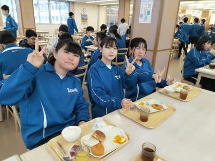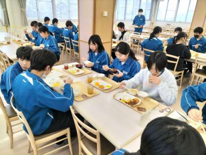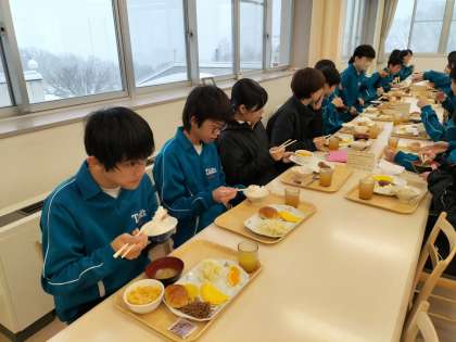 自然教室最後の食事、3日目の朝食の時間の様子です。