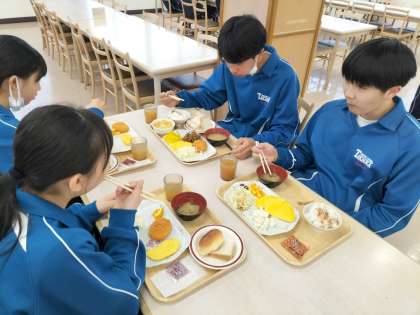 自然教室最後の食事、3日目の朝食の時間の様子です。
