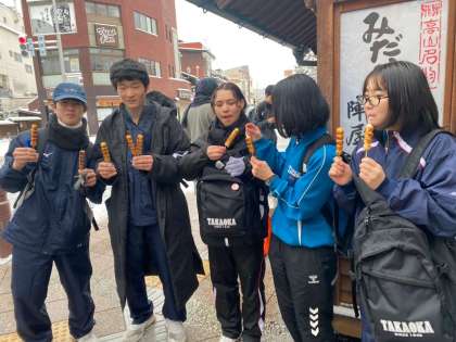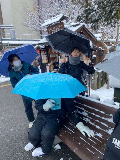 高山の古い街並みを大満喫しています。生徒にとって、雪はテンションの上がる一つのアイテムになっているようです。